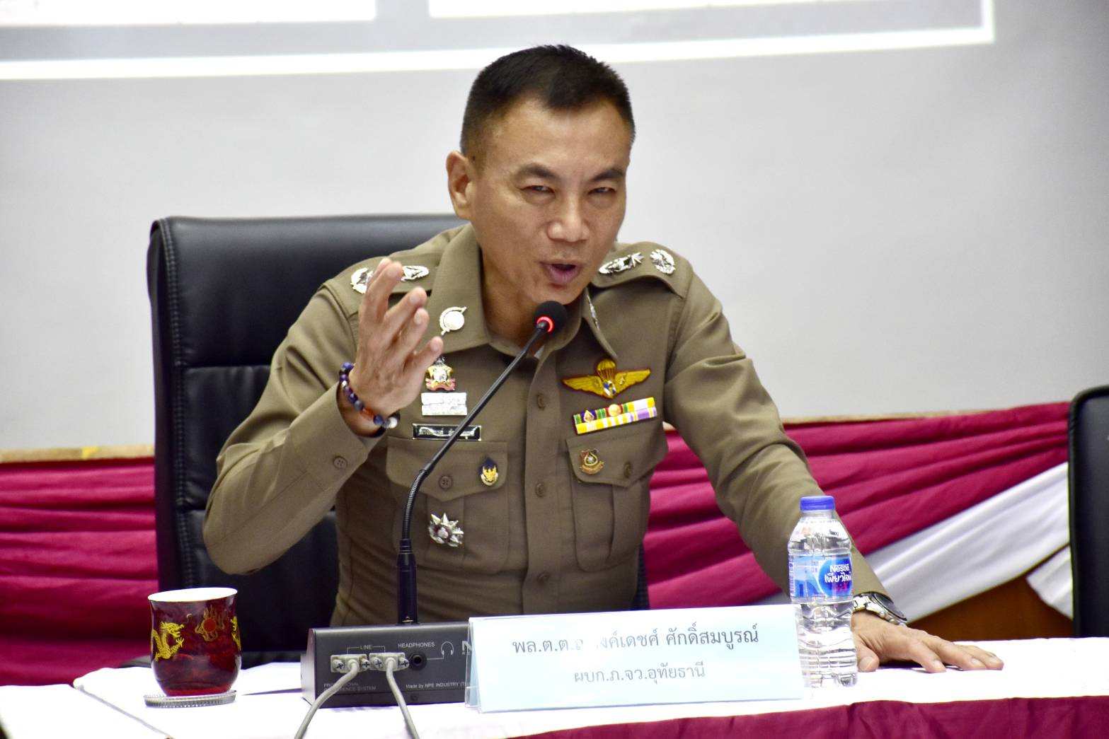 ฝ่ายอำนวยการ ภ.จว.อุทัยธานี และข้าราชการตำรวจระดับ สว.ขึ้นไปในสังกัด ภ.จว.อุทัยธานี ตลอดจนหน่วยที่เกี่ยวข้อง ประกอบด้วย พฐ.ฯ, สันติบาลฯ, ปทส.ฯ, ตม, ตำรวจท่องเที่ยว และตำรวจทางหลวง เข้าร่วมการประชุมดังกล่าว