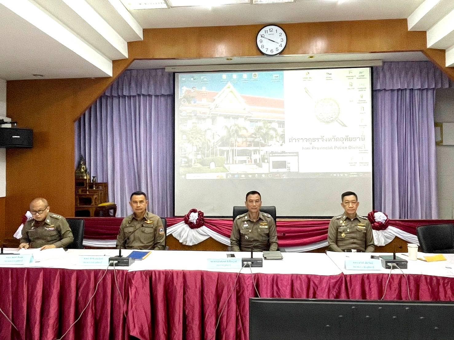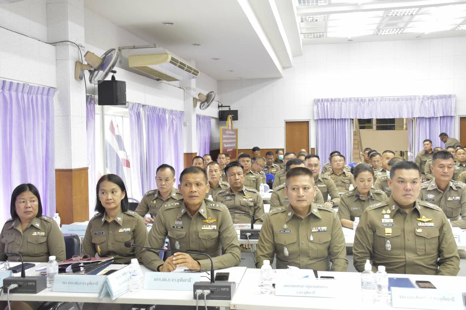 ฝ่ายอำนวยการ ภ.จว.อุทัยธานี และข้าราชการตำรวจระดับ สว.ขึ้นไปในสังกัด ภ.จว.อุทัยธานี ตลอดจนหน่วยที่เกี่ยวข้อง ประกอบด้วย พฐ.ฯ, สันติบาลฯ, ปทส.ฯ, ตม, ตำรวจท่องเที่ยว และตำรวจทางหลวง เข้าร่วมการประชุมดังกล่าว