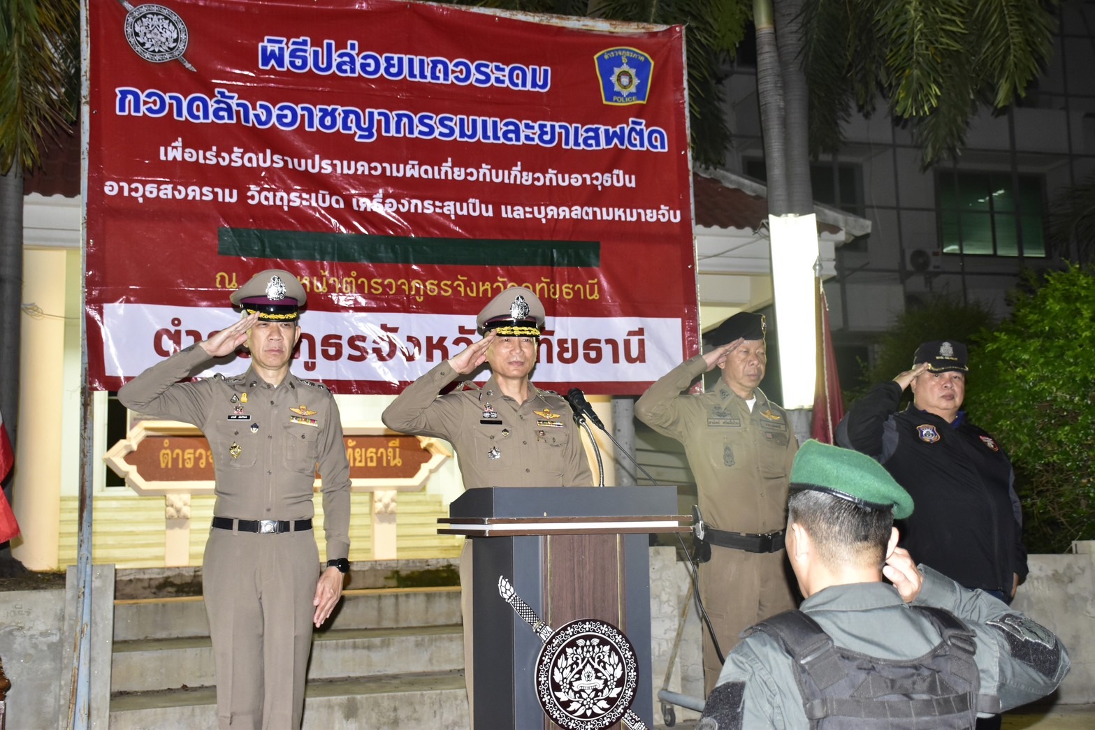 ร่วมปล่อยแถวปิดล้อมตรวจค้นพื้นที่เป้าหมาย ณ ตำรวจภูธรจังหวัดอุทัยธานี โดยมีเจ้าหน้าที่จากหลายภาคส่วนประกอบด้วย เจ้าหน้าที่จากกองบังคับการสืบสวนตำรวจภูธรภาค 6, เจ้าหน้าที่สืบสวนตำรวจภูธรจังหวัดอุทัยธานี และเจ้าหน้าที่ชุดสืบสวนและปราบปรามของ สภ.เมืองอุทัยธานี เข้าร่วมปฏิบัติการปิดล้อมตรวจค้นในครั้งนี้