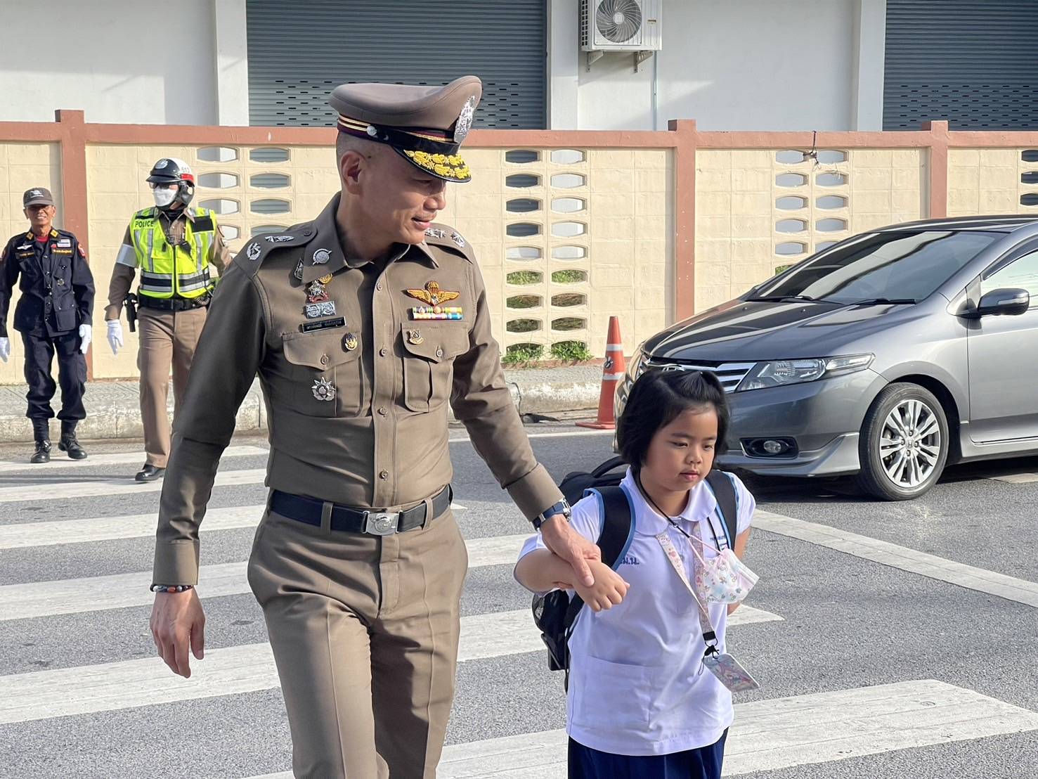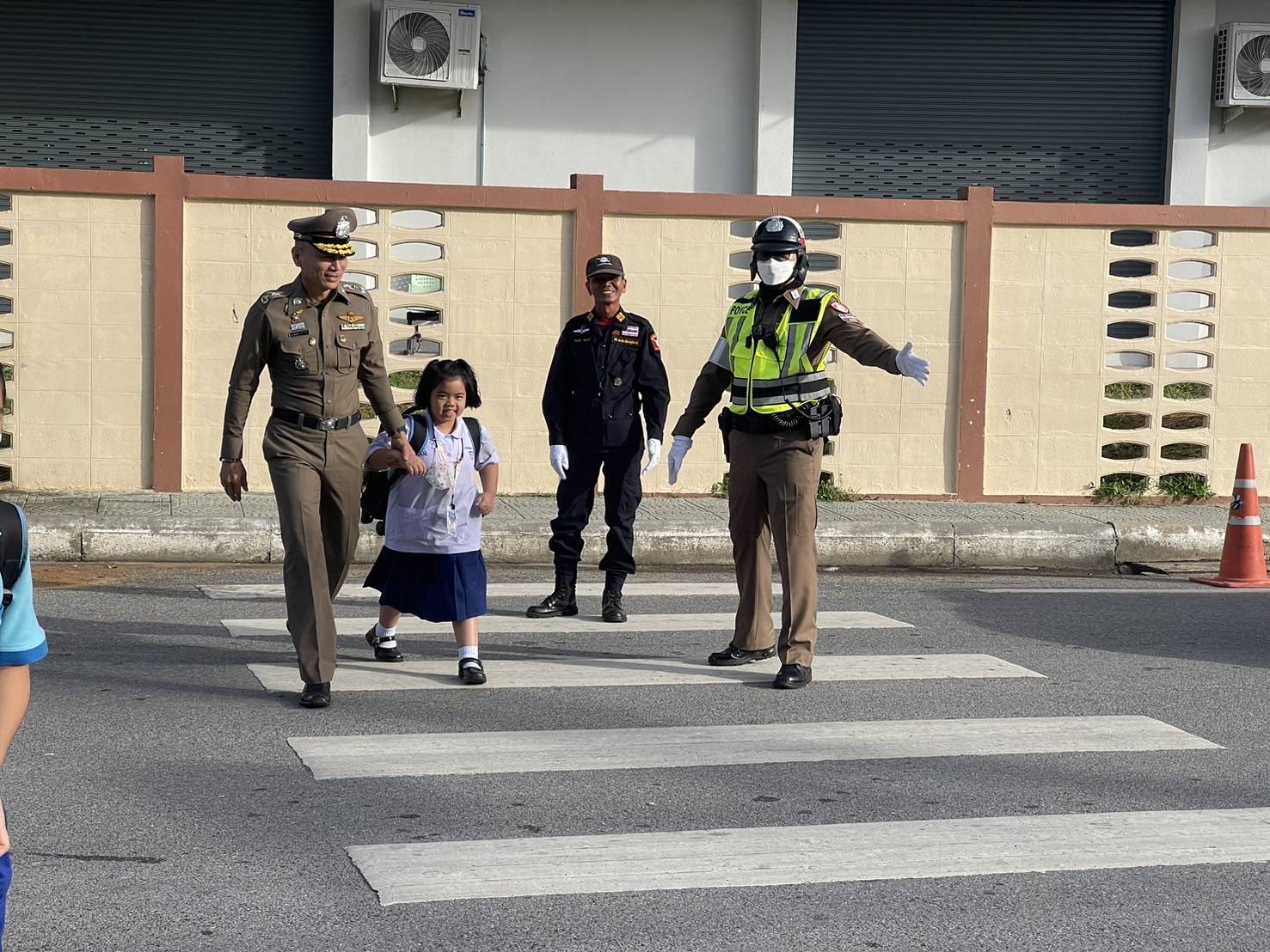 เวลา 07.00 น.ตรวจเยี่ยมและร่วมปฏิบัติในการอำนวยความสะดวกด้านการจราจรหน้า รร.อนุบาลเมืองอุทัยธานี